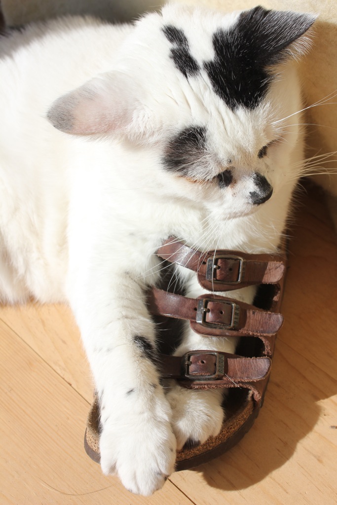 One of our cats. A silly, lovely being with a thing for women’s shoes.