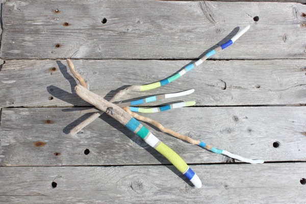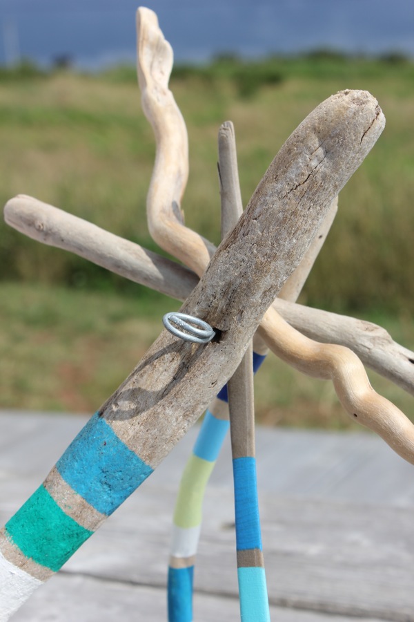 Ingrédients : bois flotté des Iles-de-la-Madeleine (petit archipel d’îles au milieu du Golfe du Saint-Laurent), fil de fer galvanisé, peinture acrylique