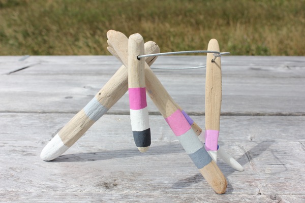 Ingrédients : bois flotté des Iles-de-la-Madeleine (petit archipel d’îles au milieu du Golfe du Saint-Laurent), fil de fer galvanisé, peinture acrylique